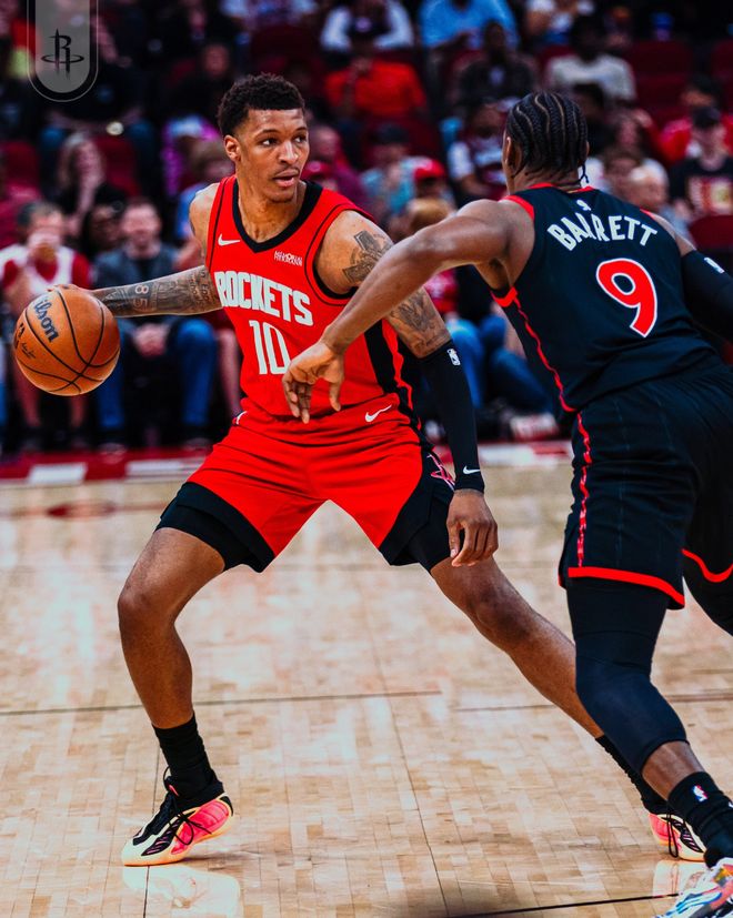 火箭队的杜兰特得到29分和7个篮板,汤普森得到23分和6次助攻,史密斯得到23分和4个篮板,申京得到14分和13个篮板,卡佩拉得到4分和11个篮板。猛龙队的巴雷特得到25分和6个篮板,巴恩斯得到24分和5个篮板,奎克利得到12分、4个篮板和6次助攻,英格拉姆得到9分和4个篮板。