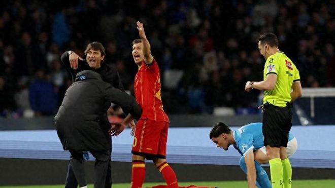 比赛进入补时阶段,莱切队正准备执行角球时,班达在无对抗情况下突然倒地不起。这一幕让现场气氛瞬间凝固。那不勒斯主帅安东尼奥·孔蒂第一时间冲入场内,示意队医迅速进场救治。