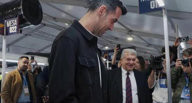 拉波尔塔是布斯克茨在2008年首次代表巴萨一队出场时的俱乐部主席,也是他在2023年离开俱乐部并赢得第九个联赛冠军时的主席,他陪同布斯克茨走到投票箱前。