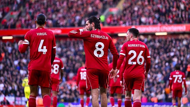 第18分钟,利物浦获得前场任意球,索博斯洛伊的射门绕过人墙,打出电梯球的效果,皮球急速下坠,维卡里奥扑救不及,利物浦取得领先。