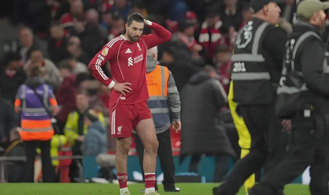 隐患终成大祸,第90分钟的丢球堪称灾难性。维卡里奥后场一脚大脚,穆阿尼轻松抗住范戴克,禁区内从容分球,里沙利松无人盯防推射破门,热刺1-1扳平比分。这粒进球,被传奇球星罗伊·基恩怒斥为“小学生都不会犯的错误”,而数据更能说明问题:本赛季利物浦在第90分钟及之后已丢8球,创下队史英超单赛季最差纪录;主场领先后已丢7分,是2016-17赛季以来的最高值。曾经以铁血防守著称的红军,如今沦为“补时送分专业户”,防守端的乱象暴露无遗。