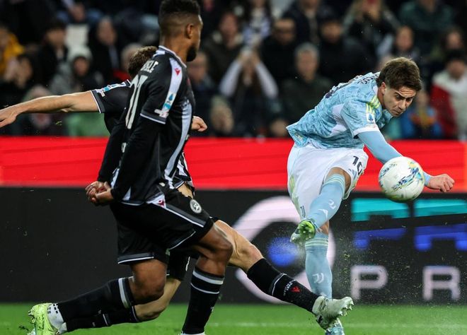 第32分钟,扎尼奥洛犯规被出示黄牌。第38分钟,尤文图斯进球了!伊尔迪兹在禁区左侧送出横传,博加门前包抄射门打进。半场结束,尤文图斯1-0领先乌迪内斯。尤文图斯上半场控球率控球率高达59%,14次射门,5次射正,进了1球。而乌迪内斯上半场有些被动,只有5次射门,1次射正,没能攻破尤文图斯大门。