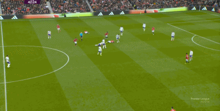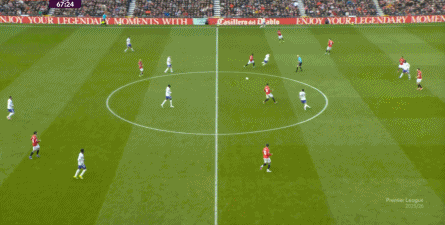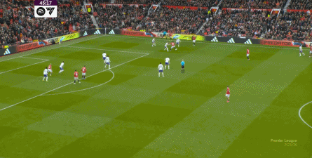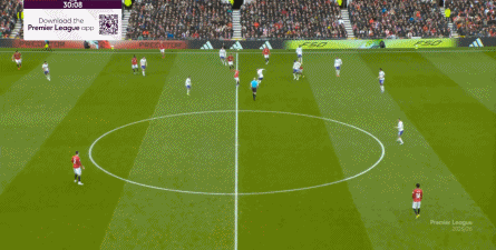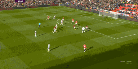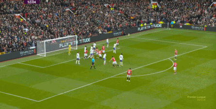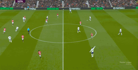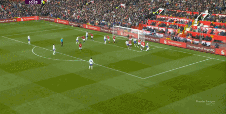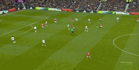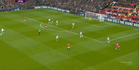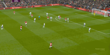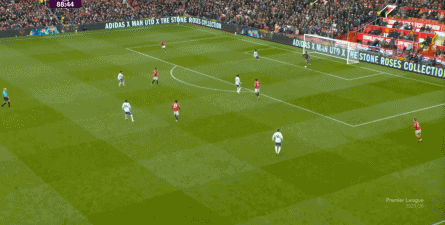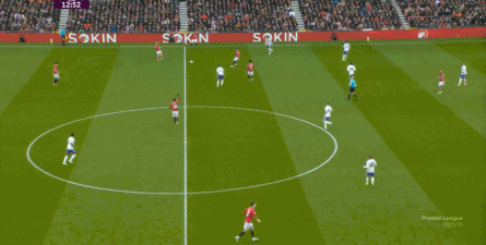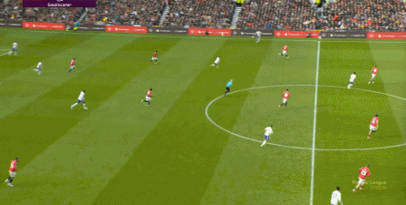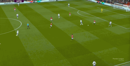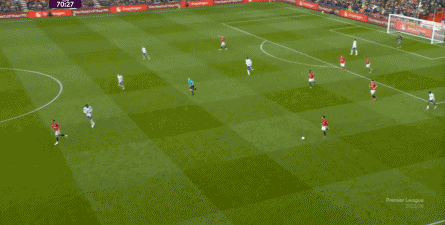 就在这次制造的前场界外球里,曼联转移到左路,从而制造了本场比赛的第一次进攻威胁,也就是上半场前半段只能打出来的传中:
