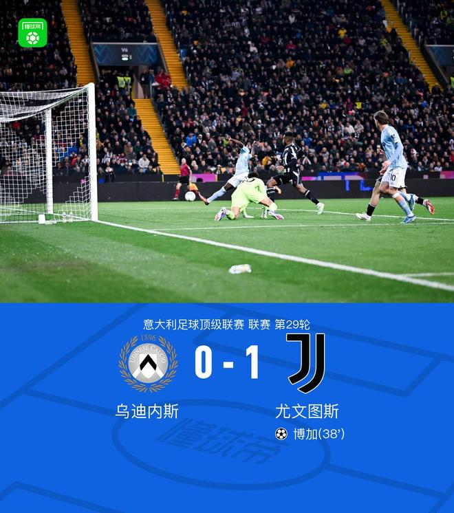第38分钟,伊尔迪兹助攻,博加首开记录,乌迪内斯0-1尤文