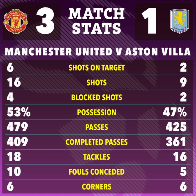 替补出场的中锋谢什科也继续展示其「超级替补」的特色,上阵后得分锁定胜局。维拉后卫博加德连续失误,他先是被库尼亚过掉,在后者传中遭封堵反弹到其脚下时,又不慎把球传回门前,谢什科得球转身射门,皮球折射后入网,曼联3-1扩大领先优势。