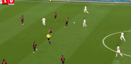 第90+7分钟,体毛级越位!半自动越位系统显示霍夫曼绝杀球就差一点