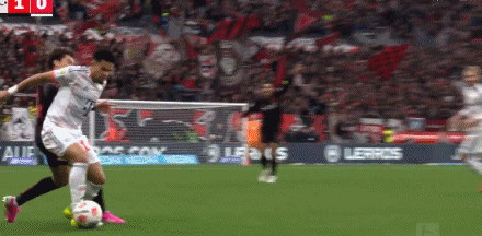 第69分钟,奥利塞精准斜塞,迪亚斯冷静推远角破门,拜仁1-1扳平药厂!
