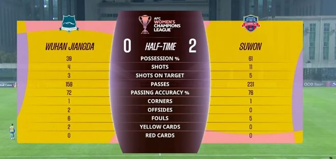 邓梦晔进球被吹罚无效,武汉车谷江大女足以0比4的比分负于水原女足,止步亚冠八强无缘卫冕,这也是武汉女足在女足亚冠遭遇的最大比分失利。