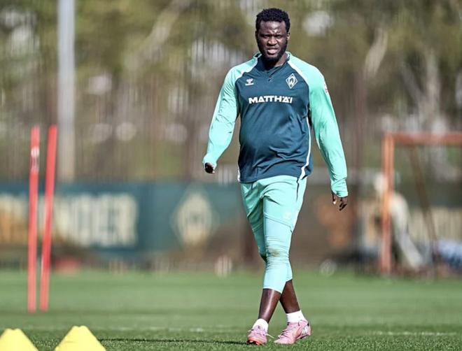 在膝盖手术不到三个月后,25岁的博尼费斯已经回到了不莱梅。在勒沃库森完成康复后,当地时间3月31日,他首次重返训练场,但却因明显的体重问题引发了俱乐部和球迷的关注。这一问题其实从他去年9月租借加盟不莱梅时就一直存在,如今情况似乎更加严重。据《图片报》消息,这位前锋目前体重超标接近10公斤。