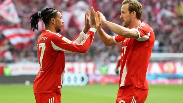 49’莱默传球,凯恩闪开角度射入远角,拜仁3比0。