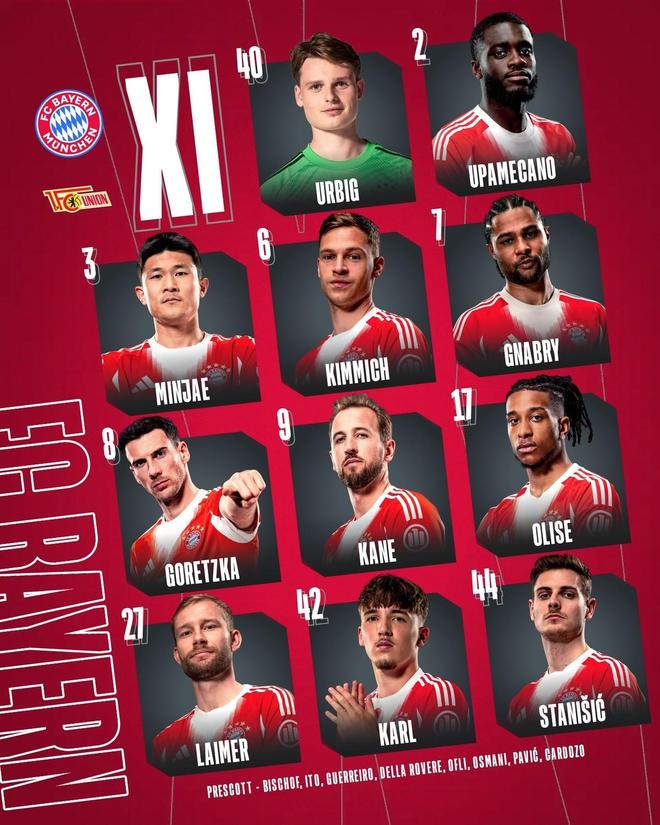 拜仁vs柏林联:凯恩、奥利塞领衔,卡尔、乌尔比希出战